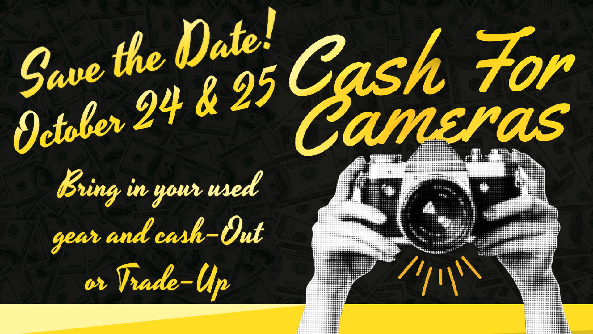 Have camera gear you are not using? Are you wanting to upgrade a camera or system? Used camera buyers will be here Friday, October 24th and Saturday, October 25th buying clean, fully functional photo gear, both digital and film.